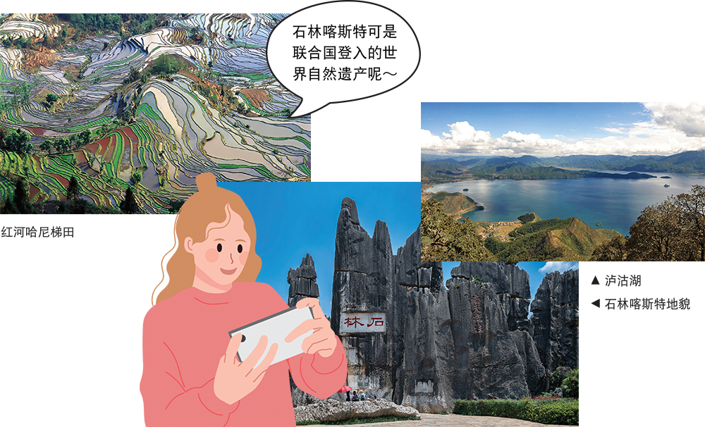 云南还拥有红河哈尼梯田、石林喀斯特地貌、泸沽湖、洱海、滇池等高原湖泊等世界级地貌!