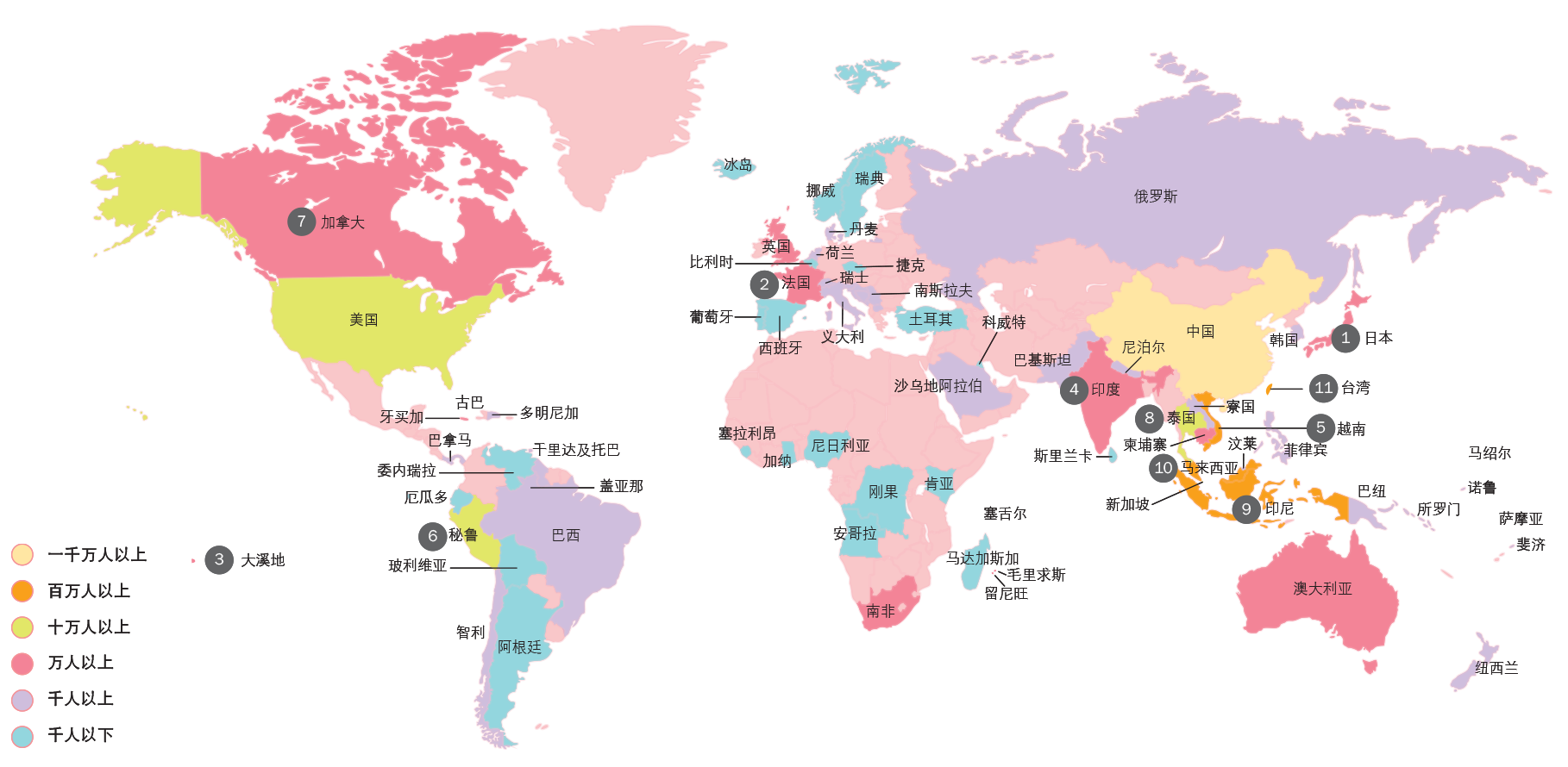 世界客家人口分布